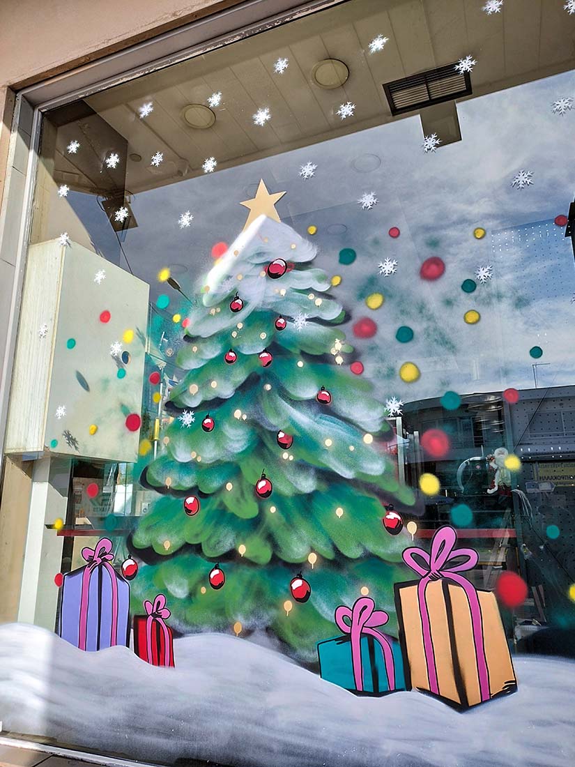 Εορταστικές ζωγραφιές σε βιτρίνες καταστημάτων